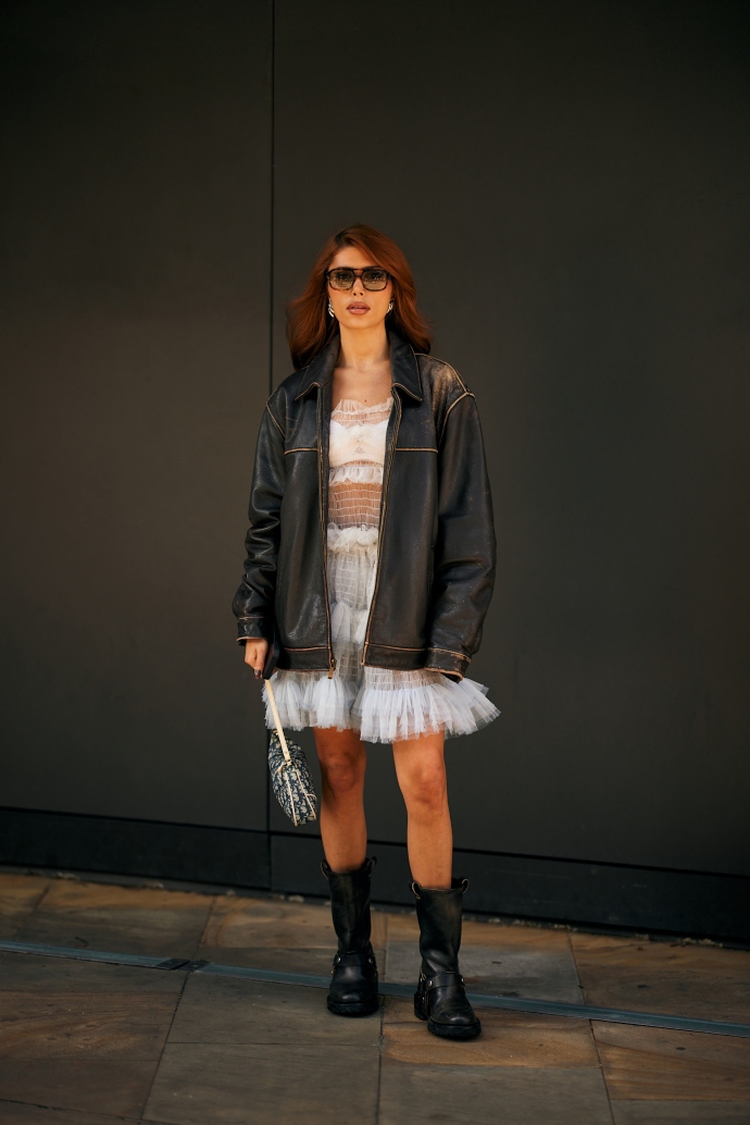 1. Φόρεσε τα biker μποτάκια με ένα τούλινο φόρεμα και ένα leather jacket