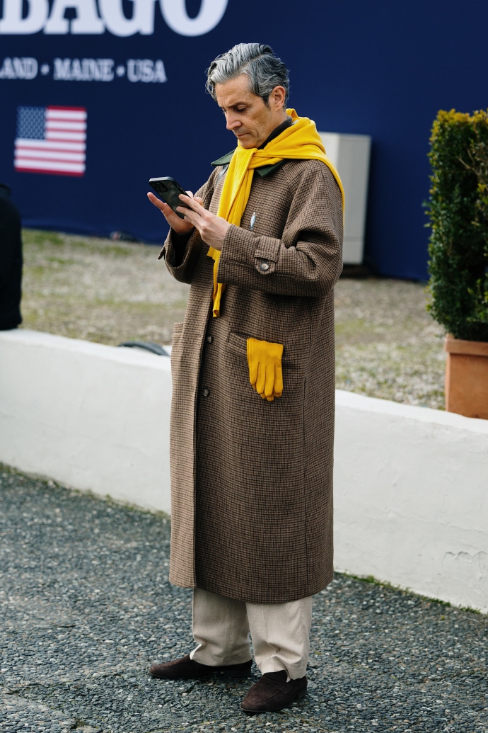 Ένα καλοραμμένο μακρύ παλτό θα είναι πάντα το απόλυτο classic για όλες τις ντουλάπες. Θα το φορέσεις με τα πάντα. Με παντελόνια, πουλόβερ, φούστες και φορέματα. Ένας τρόπος για να το αναδείξεις ακόμη περισσότερο είναι να του προσθέσεις χρωματιστά αξεσουάρ όπως το παρακάτω κίτρινο πλεκτό κασκόλ σε συνδυασμό με τα γάντια.