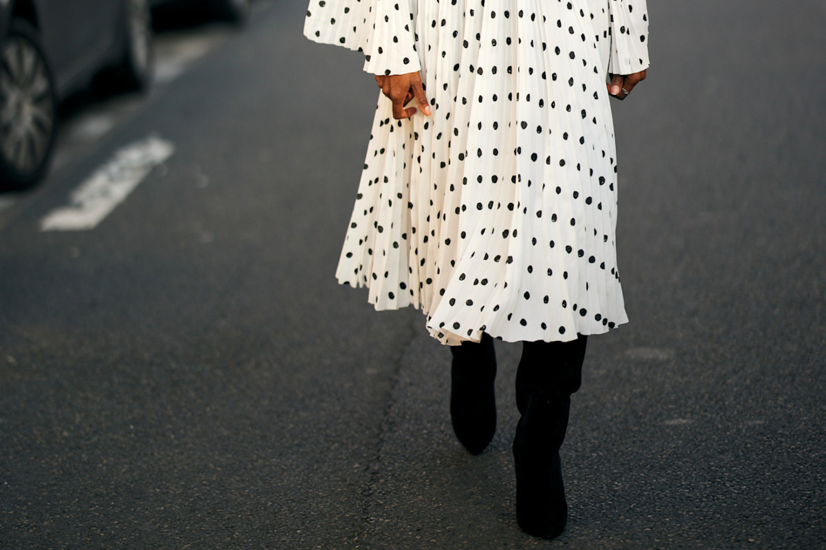 Ένα πουά λευκό φόρεμα μαζί με ένα ζευγάρι μπότες θα δημιουργήσει το πιο κομψό σύνολο για κάθε περίσταση.