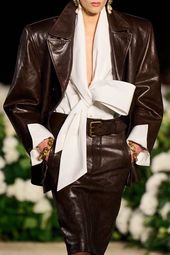 Ταυτόχρονα, στα δερμάτινα μπουφάν που βλέπουμε στις πασαρέλες, παρατηρείται η προσθήκη στοιχείων που απογειώνουν το κλασικό αυτό πανωφόρι. Οι λεπτομέρειες κάνουν τη διαφορά: μεγάλοι γιακάδες, ιδιαίτερα, μακριά μανίκια και distressed υφές προσφέρουν μια αφοπλιστική δυναμική σε αυτό το ρούχο.