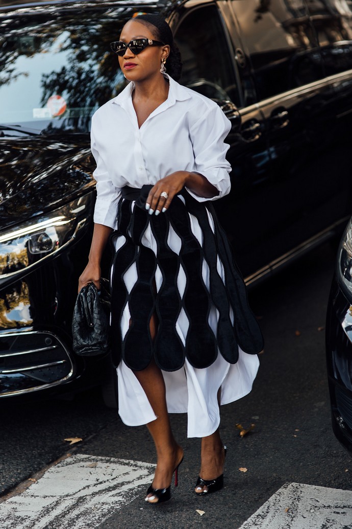 Το λευκό πουκάμισο μακραίνει και στο street style συνδυάζεται με laser cut φούστες για μοναδικά σύνολα.