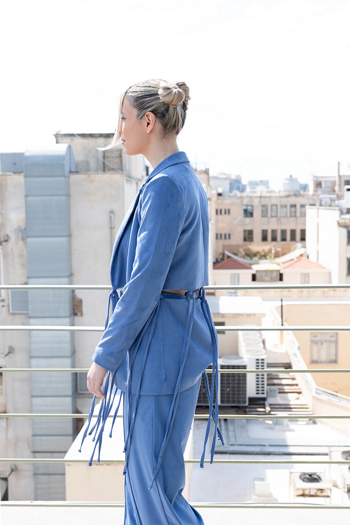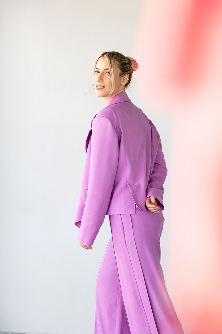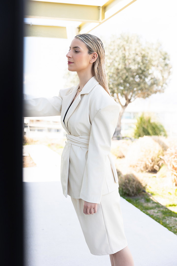 Η Ειρήνη Σκυλακακη με pantsuit Mystis Designs