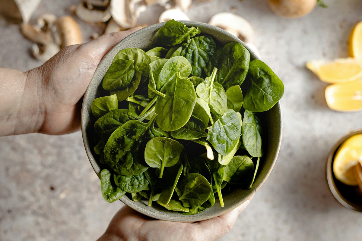 Το ωμό σπανάκι αποτελεί μια επιλογή με πιο ήπια και λιγότερο πικρή γεύση σε σχέση με άλλα φυλλώδη λαχανικά. Ένα φλιτζάνι ωμού σπανακιού περιέχει 145mg, σημαντική ποσότητα βιταμίνης K, η οποία καλύπτει ένα μεγάλο μέρος της συνιστώμενης ημερήσιας πρόσληψης.